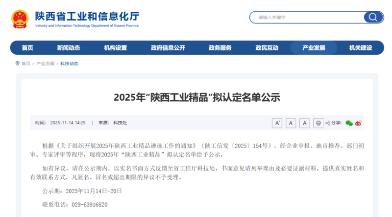 据悉,“陕西工业精品”认定工作通过聚焦高端装备自主突破、新材料首批次应用、电子信息创新及传统产业升级等领域,旨在遴选出一批“技术领先、性能优良、品质卓越、效益良好”的工业产品,是陕西省深入实施创新驱动发展战略、推动制造业高质量发展的重要举措。