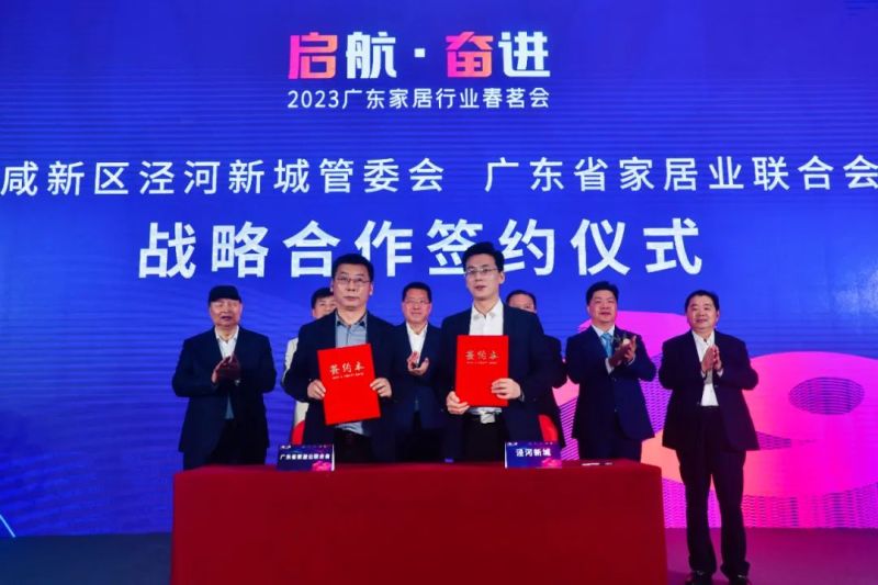 3月27 日,第十九届中国家居产业高质量发展峰会暨2023广东家居行业春茗会在广州举行。会上,陕西省西咸新区泾河新城与广东省家居业联合会签署战略合作协议。依照协议,广东省家居业联合会的“国货行天下”总部基地将落户泾河新城原点新城。