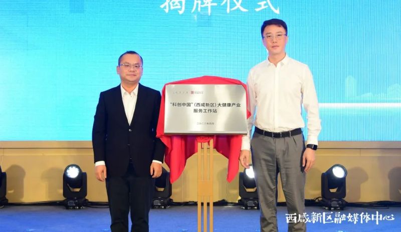 现场还为“科创中国”(西咸新区)大健康产业服务工作站揭牌,并向入选“科创中国”新锐企业榜的西咸新区予果微码生物科技有限公司颁奖。