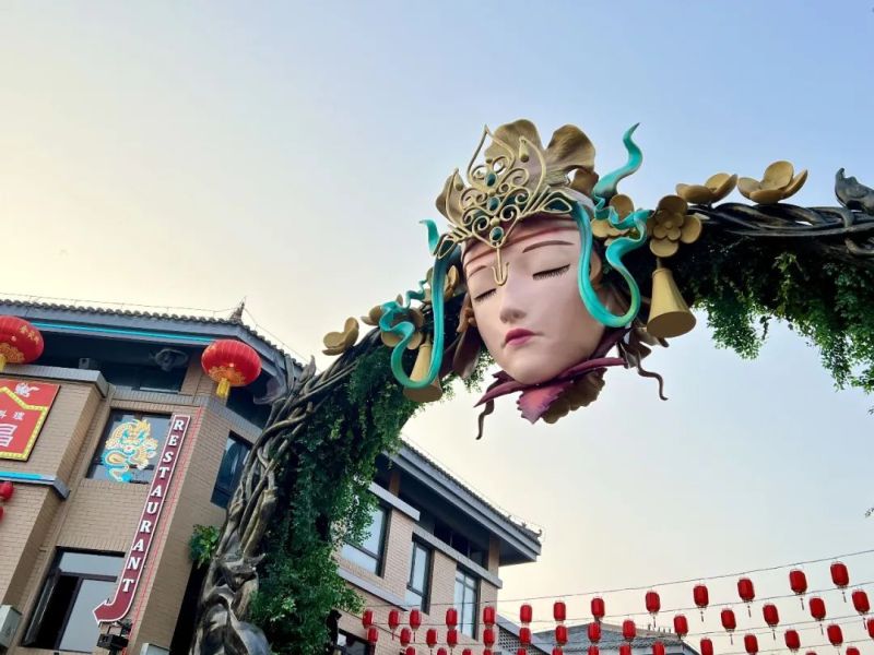 作为国内初创造,以创新商业形态为背景,原创剧本游玩为内核的大型中式赛博风沉浸娱乐街区金茯城,集合了全新的趣游消费业态,展示了地域文化的多样性,通过音乐、声光电、艺术造型以及剧情互动形式,散发着全新的休闲度假引力。沉浸其中,你会发现一张硕大别致而精美的面孔在多彩动感的3D灯光辉映下,穿越时空,款款而来……这座金花塑像美丽,梦幻不失神秘,却又别具美感。