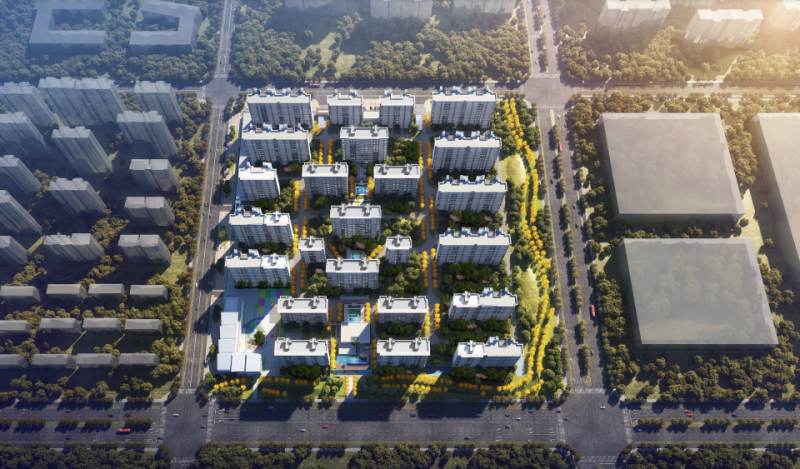 06 中国铁建创域城项目:项目位于秦汉新城汉高大道以东、李广街以南、汉书三路以西、萧何路以北。规划建设用地约61.73亩,总建筑面积为14.66万平方米。建筑密度18.5%,绿地率36%。按照A级住宅品质标准配备社区综合服务站、老年日间照料中心、学前儿童照料中心等相应服务设施。