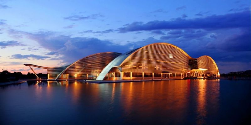 位于兰池大道中段的秦汉新城规划展览中心,整体建筑犹如一艘在海洋中乘风破浪的大船,既展现出秦汉新城以古创今、至美和谐的城市人文,又象征着这座新城破浪前行、生机勃发的发展态势。