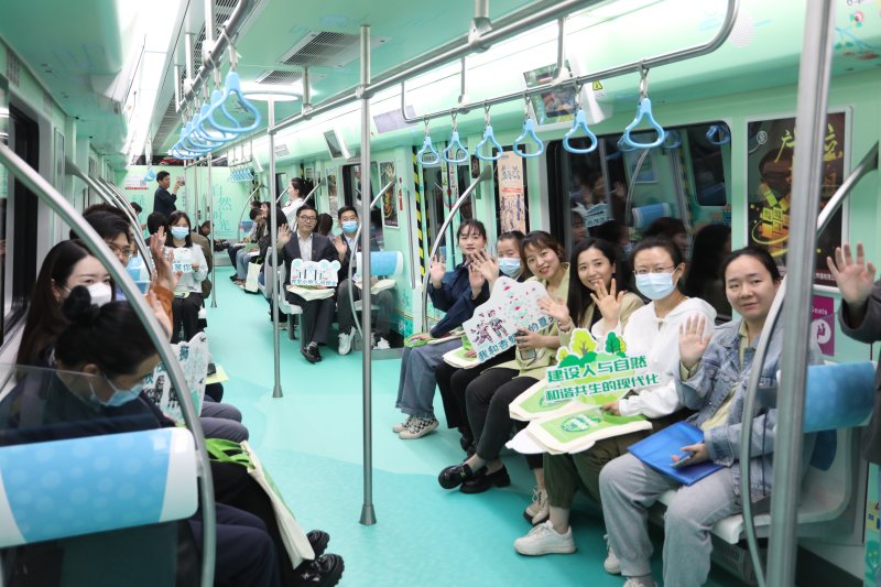 此外,主题车厢首发时,空港新城还举办了“我是生态文明主题车厢体验官”活动,邀请新城生态委各成员单位、辖区企业和媒体记者代表乘坐体验,并向站内乘客派发联名主题书签,进一步传播生态文明理念。