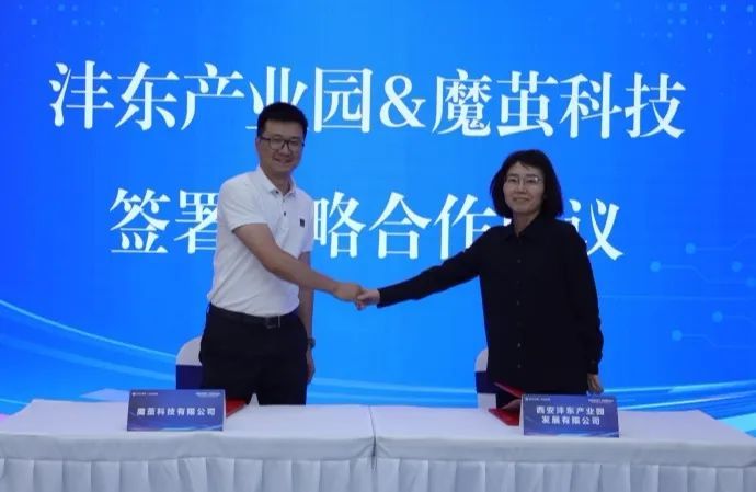 发布会现场,沣东创智园与魔茧科技有限公司签署了战略合作协议,双方将聚焦技术革新、企业服务、人才发展、投融资对接等产业服务领域,展开全方位深度合作,共同打造秦创原TOD产业社区示范港和CBD核心商务区。以此次合作为契机,双方将进一步推动沣东新城产业集群集聚发展,为秦创原总窗口建设由“势”转“能”作出积极贡献。