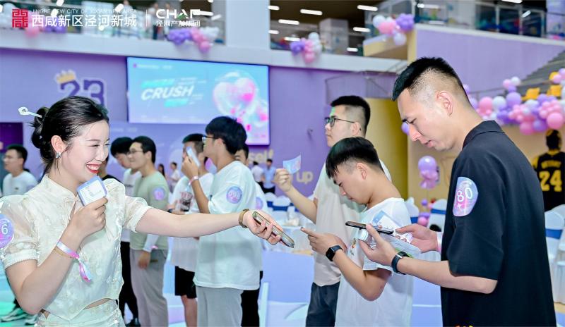8月22日,“我在泾河遇见你”——发光青年七夕交友派对|心动泾河CRUSH多巴胺活动在泾河新城体育中心顺利举办,吸引了泾河新城辖区重点企事业单位及合作单位120余位优质单身青年共赴这场青春交友盛会。