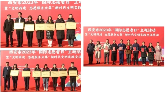 第38个“国际志愿者日”来临之际,12月4日下午,西安市2023年“国际志愿者日”主题活动暨“文明西咸·志愿服务大集”新时代文明实践交流展示活动在西咸新区沣东吾悦广场举行,现场对一批文明实践和志愿服务先进集体和个人进行表彰。