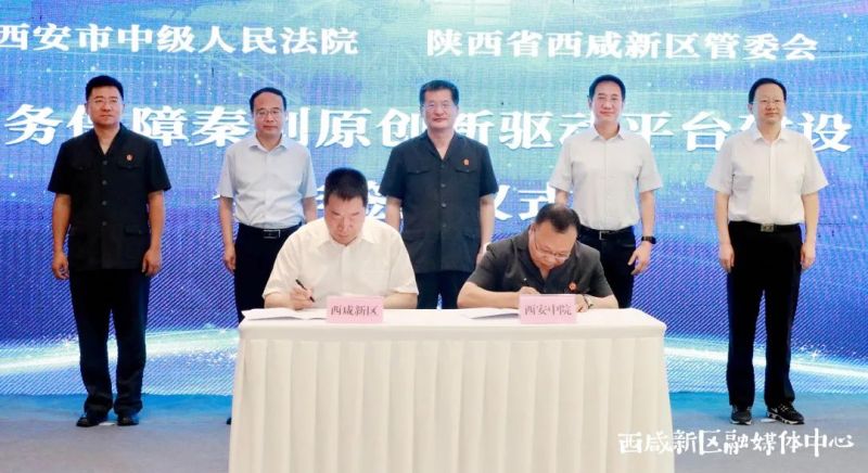 6月7日,西安市中级人民法院与西咸新区签署合作框架协议。西安市中级人民法院院长赵雷、西咸新区党工委书记杨仁华出席签约仪式,共同为全省首家知识产权巡回审判庭——“西安市中级人民法院西咸新区知识产权巡回审判庭”揭牌,这标志着秦创原创新驱动平台建设的法治保障和法律服务水平进一步提升。