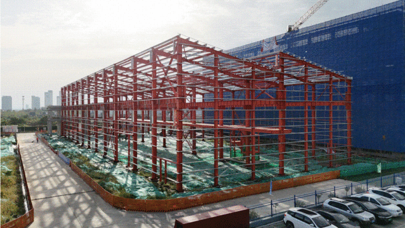 项目建设内容包括1栋研发办公楼、2栋生产厂房及1栋配套楼。截至目前,4#楼已实现主体封顶,1#厂房已完成地下主体施工, 3#厂房已完成钢构主体连廊主体施工。