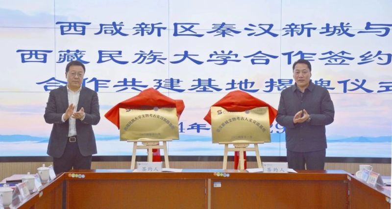 签约仪式上,西藏民族大学文物考古实习实践基地、秦汉新城文物考古人文交流基地同时揭牌。双方将合作开展西藏民族大学民族研究院学生实习实践工作,通过举办专业讲座、培训等方式,共同提升文化遗产保护、博物馆运营等方面的专业水平,同时为秦汉新城保护传承文化遗产、推进文旅深度融合发展提供更多人才、技术和智力支撑。