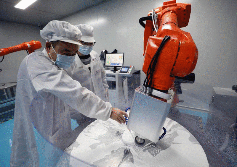 走进秦创原(沣东)创智云谷西安砺芯慧感科技有限公司(以下简称“砺芯慧感”)的千级净化车间里,全自动激光调阻机正在开足马力生产薄膜铂电阻传感器芯体,技术工人分别用旁边的两台镀膜机进行铂金薄膜加工和相关传感的工艺试验。