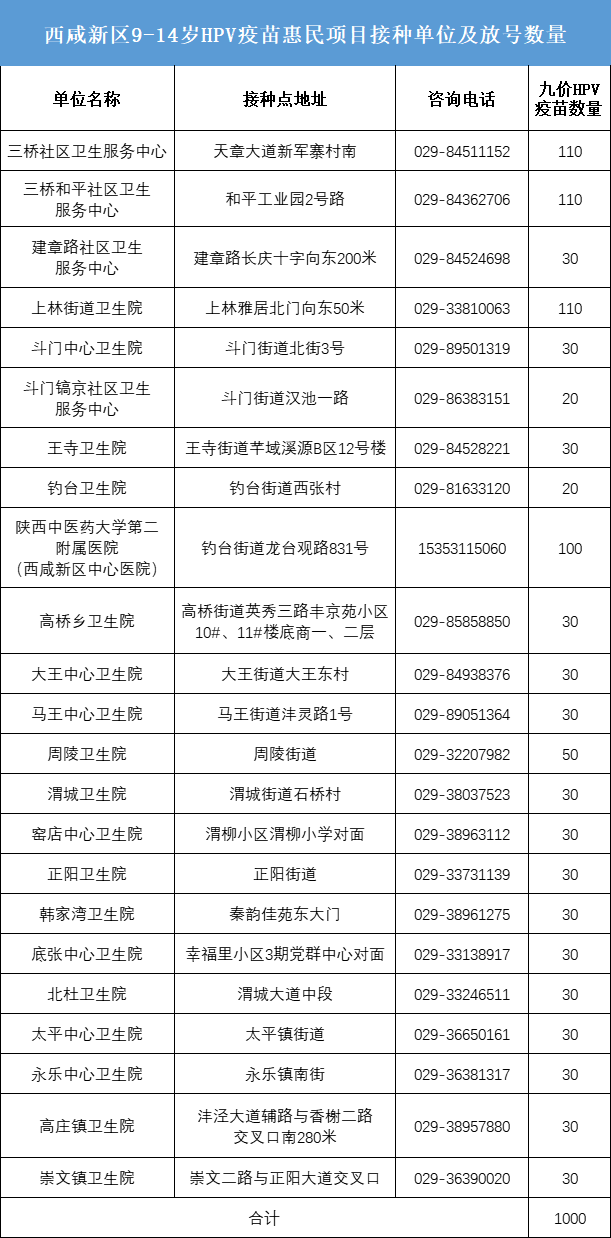 本次西咸新区开放23个惠民项目接种单位,第一批九价疫苗支持预约1000人,数量有限,约完为止。