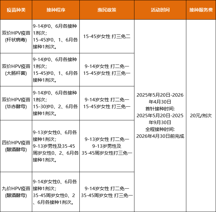 全程接种时间:2026年4月30日前完成;若2026年4月30日前未完成全程接种的人员,后续针次不再享受本次活动的减免优惠政策。