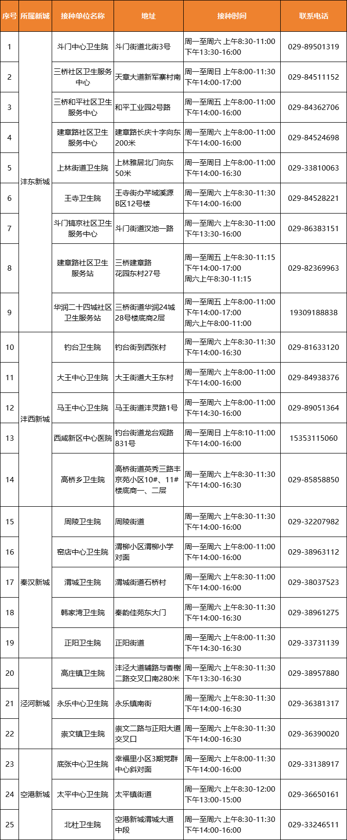 HPV疫苗、带状疱疹疫苗可通过电话或前往接种门诊咨询、登记并接种,西咸新区预防接种门诊具体详情附后。
