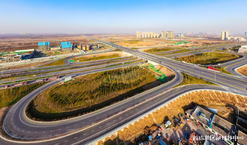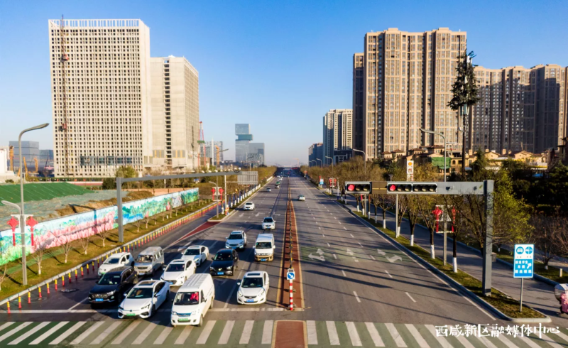 车辆川流不息,高楼鳞次栉比,西咸新区沣东新城的三桥新街已然成为大西安的交通主动脉,车道中央的绿化带和两侧的绿化分隔带让这里在冬日也毫不萧瑟。