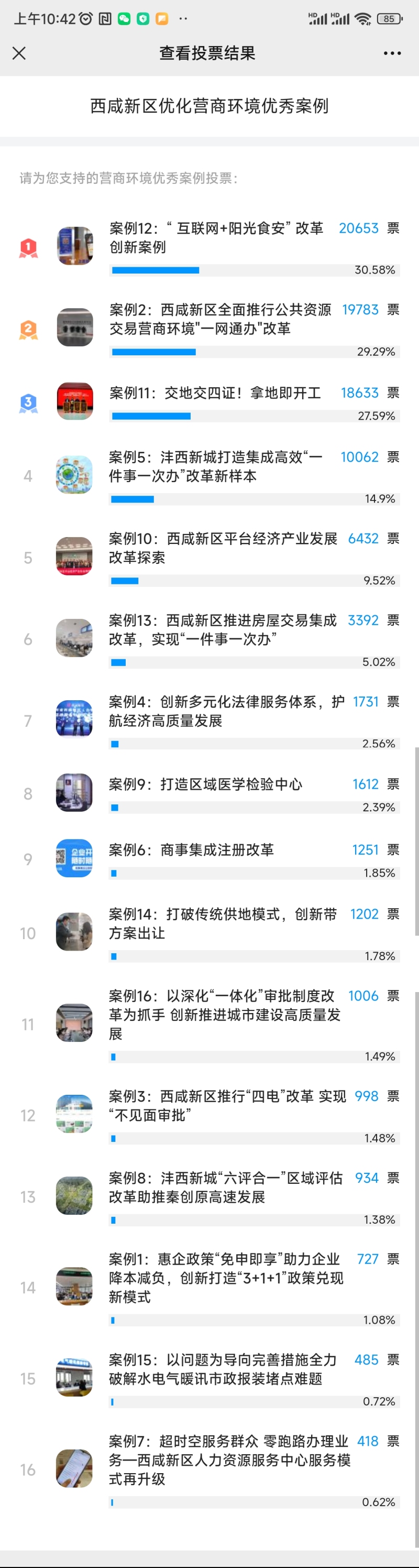 为进一步深化西咸新区“放管服”改革优化提升营商环境,发挥典型经验的示范带动作用,西咸新区启动2021年度“营商环境优秀案例”评选活动,面向各新城,新区各部门、各企事业单位广泛征集90个改革案例,通过初评、复审答辩和公证处公证等环节16个案例进入网络投票。