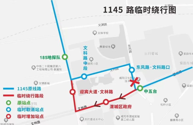 受道路施工影响,自5月8日起,西咸公交集团对1080路、1145路进行临时绕行运营。