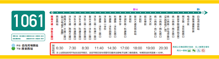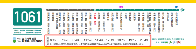 *1061路起点“西周大道·沣东三路口”站发车时间公示信息