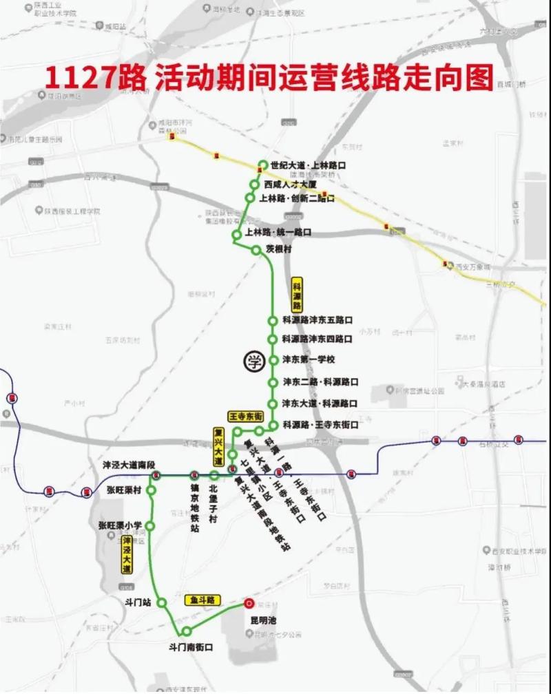 线路走向:1127路运营昆明池至世纪大道·上林路口段。