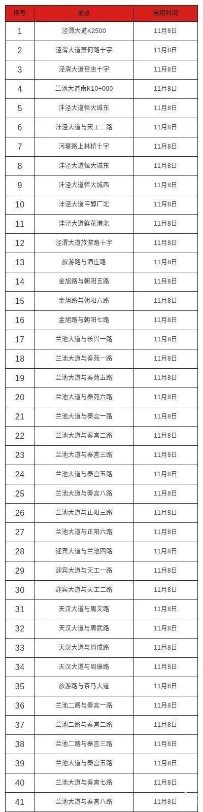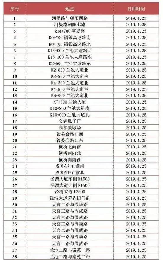 秦汉新城启用新增交通电子监控分布表