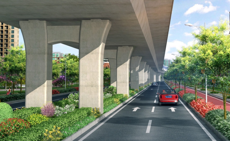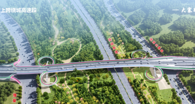 在绕城高速东侧布置一对平行匝道,便于两侧路网沟通;在西户铁路处增加布置一对平行匝道,供西户铁路两侧地面机动车及慢行系统跨越西户铁路。同时在跨越绕城高速、阿房宫车辆段、西户铁路三处增设慢行系统天桥。雨污水、照明、交通、绿化等工程同步设计。