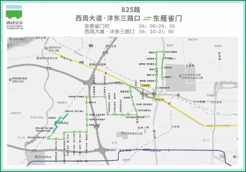车张村、天台路·征和四路口、沣东交巡警大队、蓝光公园华府(便民站)、征和四路西段、安泰路·征和四路口、宁泰路·征和四路口
