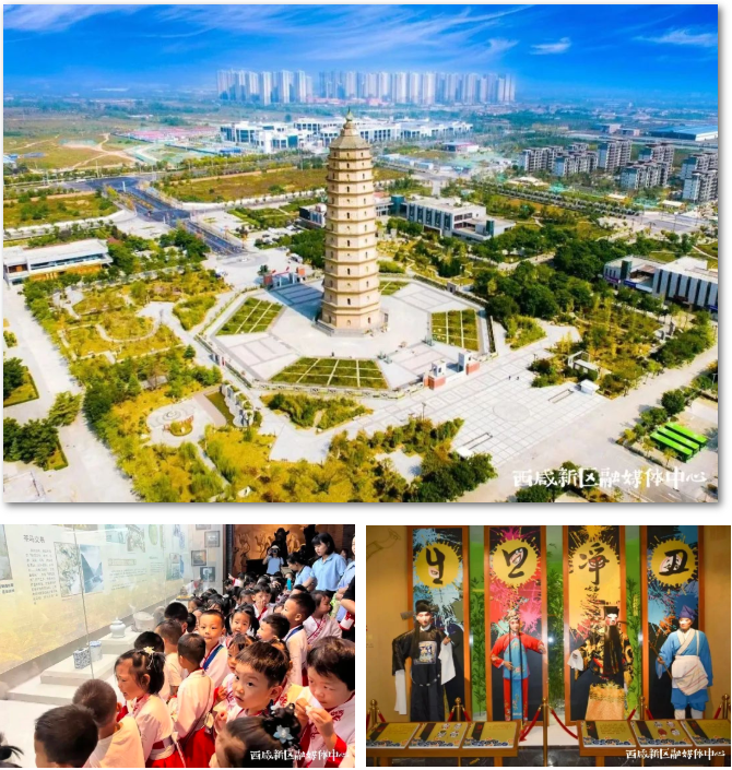 位于泾河新城,景区围绕“一塔四馆”(崇文塔、陕商文化博览馆、国艺秦腔馆、三秦非遗馆、崇文国学馆),相继推出8条优秀传统文化科普线路和十余项文化科普体验课程,让不同年龄段中小学生在参观、学习与互动中感知传统文化魅力。