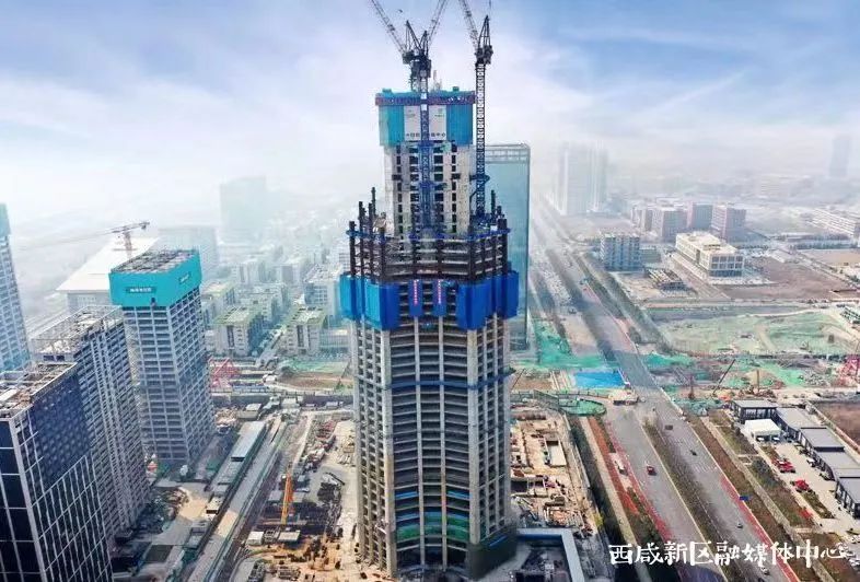 春光明媚,西咸新区沣东新城中国国际丝路中心项目建设现场机器轰鸣,工人们紧张作业,处处尽是生机勃勃的建设场景。