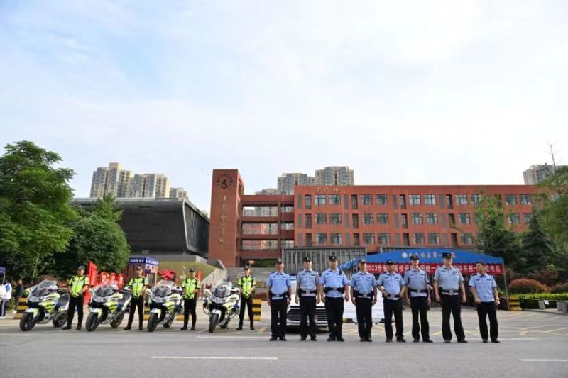 (沣东二中考点附近,交警人员对周边道路进行管控,确保考点周边交通秩序良好)