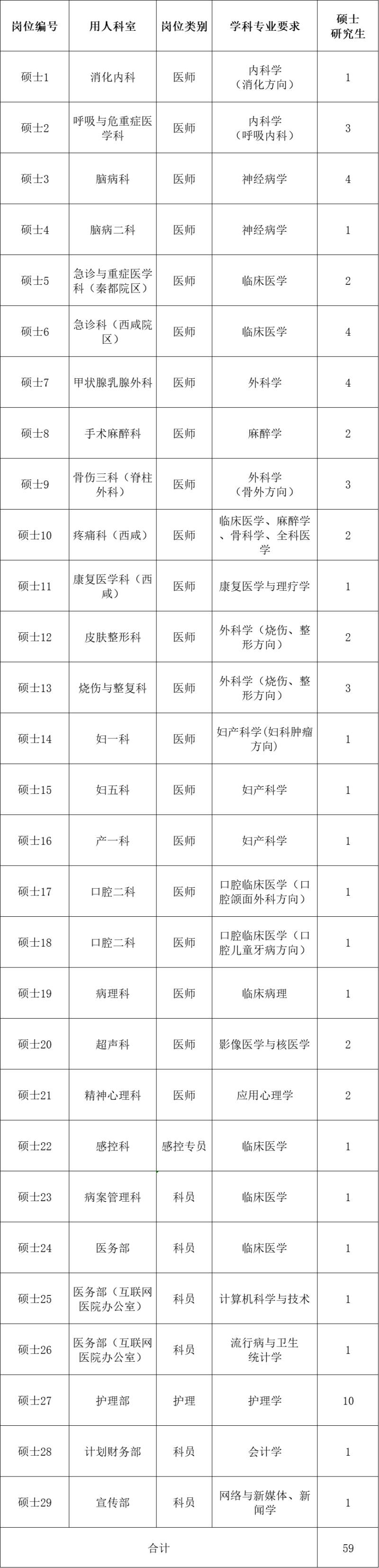 陕西中医药大学第二附属医院2025年度硕士(第一批)用人计划