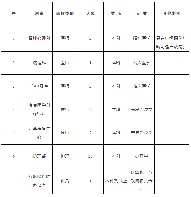 岗位名称、招聘人数及具体要求详见附件《陕西省人民医院医技和护理等专业招聘计划表》。