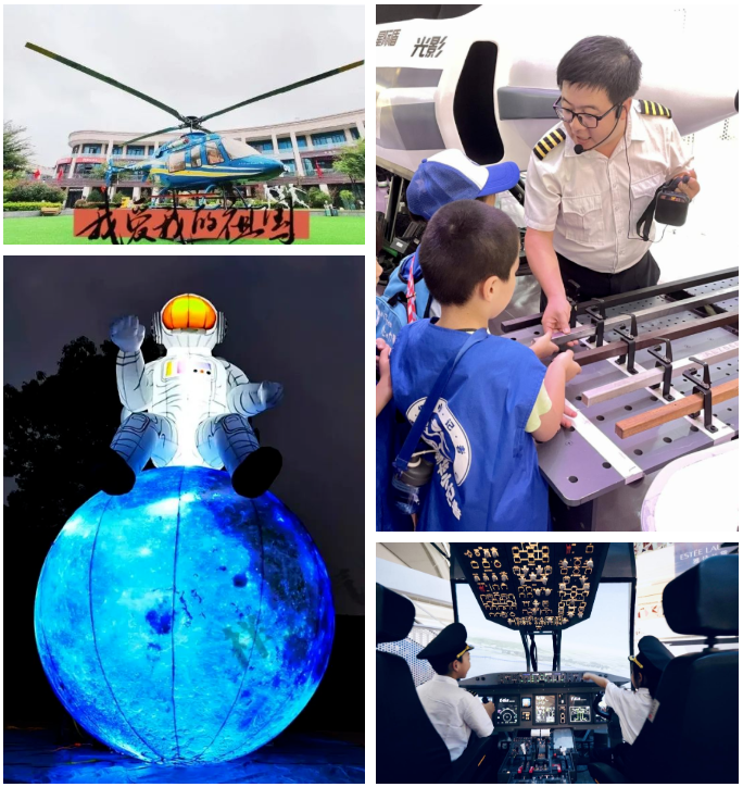 外场大型真飞机模型、内场战斗机、教练机和飞行模拟器、教具展示,亲子DIY体验......在静安荟奥莱公园都可免费体验。