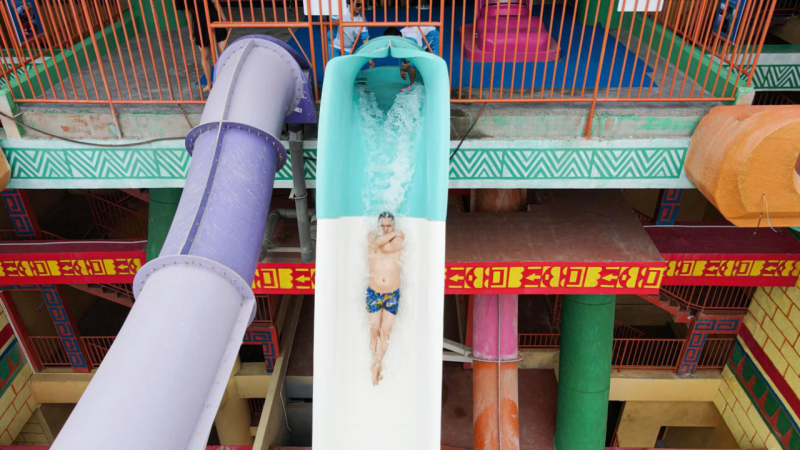 国内落差最大的炮弹滑道,急速滑行一跃坠入3米水池。记得提前想好你的落水姿势。
