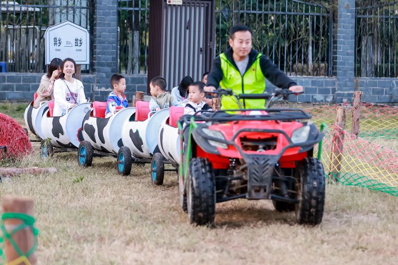 五颜六色的油桶,可爱的卡通画,连在一起组成“小火车”,当圆滚滚的油桶小火车遇见炫酷的越野车,在草坪上穿行的快感将满载着欢乐让大家穿梭在自然之间,让大小朋友们品味童年乐趣。