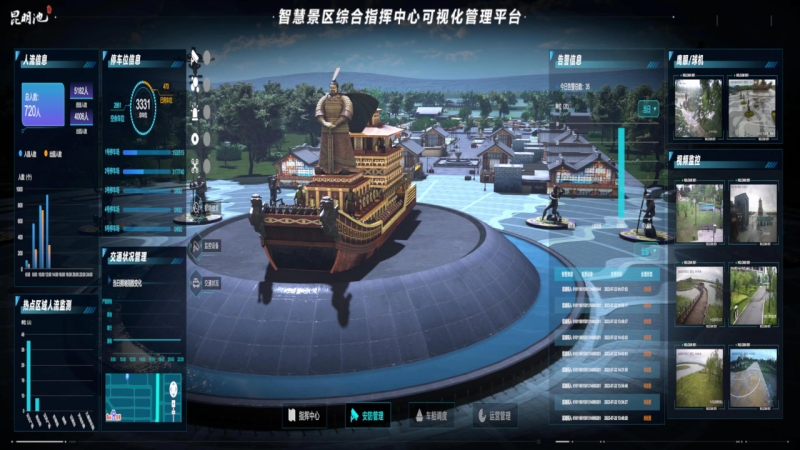 游客越来越多,管理也更加“科技范”。周末,昆明池智慧景区综合指挥中心的工作人员一刻也没停下,在他们面前的是景区打造的可视化管理平台,时刻对区域人流、车船调度、附近交通等状况进行监测。