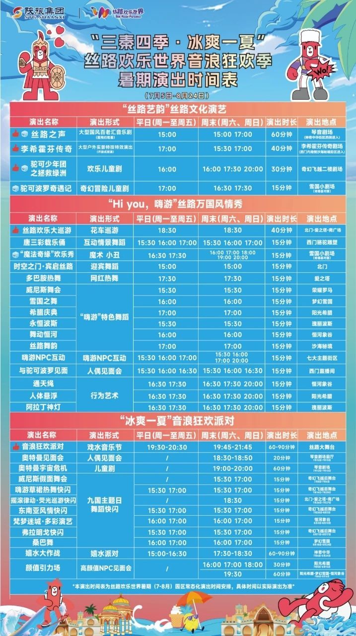 具体演出时间以各景区实际公布为准,快来西咸新区度过精彩夏天吧。