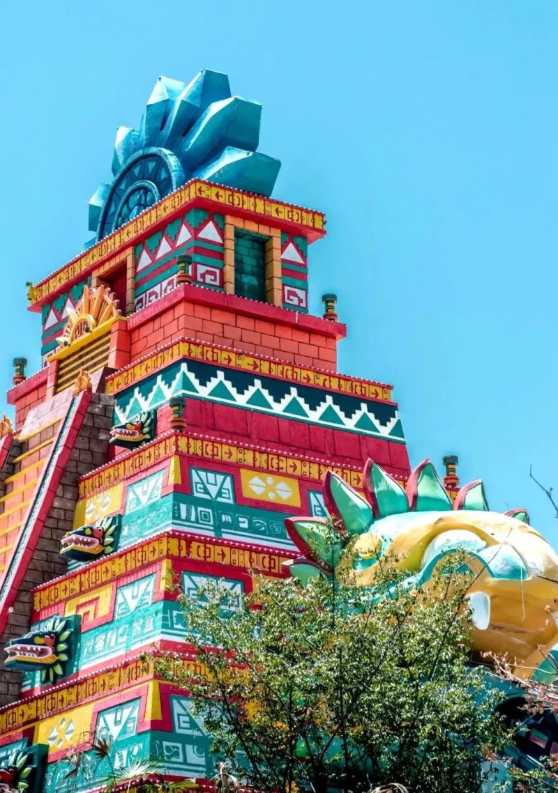 羽蛇圣地,黎明广场的右边就是羽蛇圣地区域,这里有整个园区的“王牌项目”超级大喇叭和旋风大浪板,还有经典蛇型滑道的升级版——并列竞技蛇型滑道。