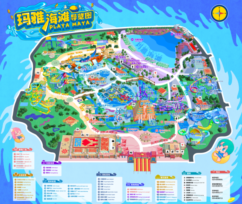 玛雅海滩,玛雅海滩由海滩、舞台以及观景台组成,拥有西北最大造浪池。今年夏天,这里将举行各种主题活动,游客可在1.6万平方米的造浪池里欣赏舞台上的精彩演出,观看绚烂的夜景灯光秀。玩累了想要休息一下,烧烤、串串、小卤味,啤酒、饮料加奶茶,园区部落餐吧、探险者餐厅等8个特色就餐区域,海滩边两条街的美食,由你敞开了吃。还有玛雅风物集等购物区域,实现你买买买的愿望。