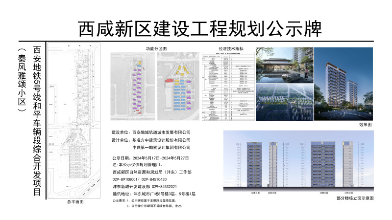 西安地铁5号线和平车辆段综合开发项目(秦风雅颂小区)位于绕城高速以东、昆明路以南、大寨路南北两侧。经建设单位申请,我部按程序完成该项目设计方案审查,办理项目《建设工程规划许可证》,项目概况附后。