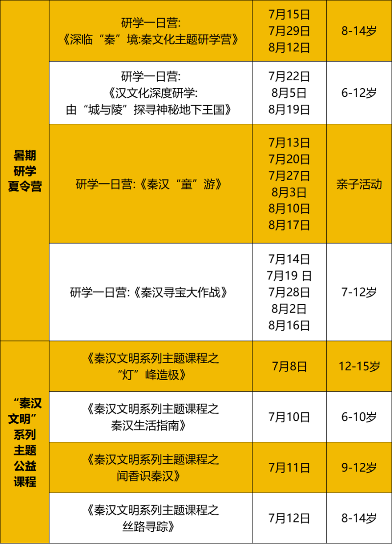 为丰富广大青少年的暑期生活,位于西咸新区秦汉新城的陕西历史博物馆秦汉馆近期发布了暑期教育活动预告,一系列丰富多彩的研学课程等你体验。