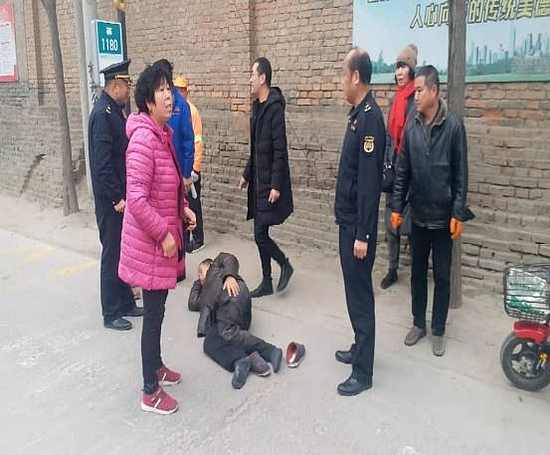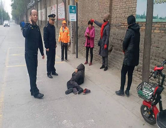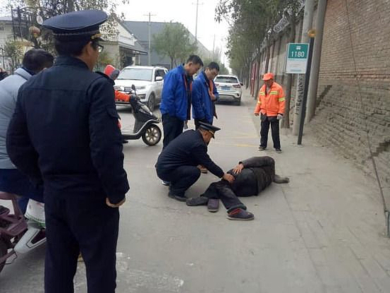 当天上午10时许,永乐镇综合行政执法大队大队长徐晓峰带领大队执法队员对辖区进行日常巡查。在巡查至永乐镇永丰村村口1180公交站牌处发现马路旁围满了群众,一名老者躺在地上动弹不得,一辆电动车倒在马路旁,大队长徐晓峰立即上前进行查看,经了解,老者在骑行过程中因自身未掌握好车速车辆倾斜导致摔倒,目前腿部疼痛难忍。徐晓峰立即拿出电话联系镇卫生院并组织大队执法队员对周边围观疏散路旁围观群众。