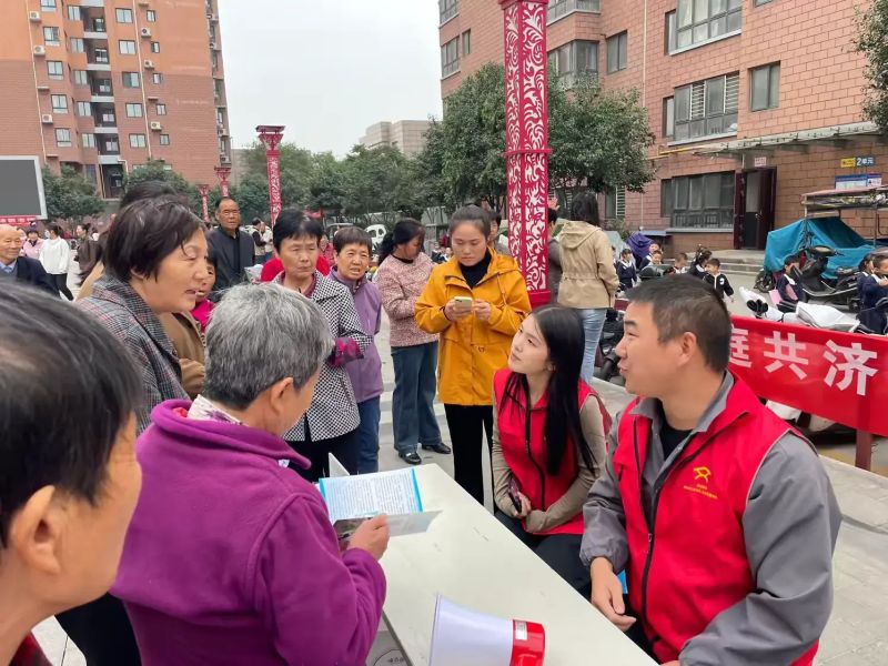 周陵街道阳光社区、阳光幼儿园联合恒安物业公司开展“医保宣传送保障 情暖重阳送温暖”重阳节主题活动。社区工作人员、网格员、志愿者齐聚广场开展居民医保政策咨询和移动帮办代办业务。现场向居民发放宣传册、面对面讲解城乡居民医保细则。