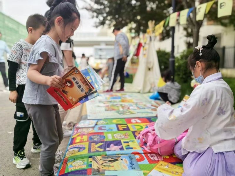 沣东第二幼儿园和沣东阿房路一校举办图书市集,“旧书”遇到“新主”,阅读的故事从这里再次开始。