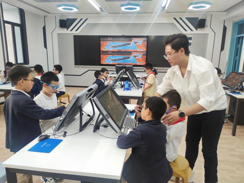 西咸新区沣东实验小学在保证科学和信息技术100%开课的基础上,引进人工智能编程课程,三、四、五年级每周安排一节课,1600余名学生做到了全员普及。学校教师自主开发STEM课程《我为校园创风景》《做个太阳能热水器》,将信息技术、科学与其他学科有机结合,开展项目式学习探索。此外学校还以智慧校园生态系统为依托,开设科学技术类社团10余个,培养学生的科技创新素养。