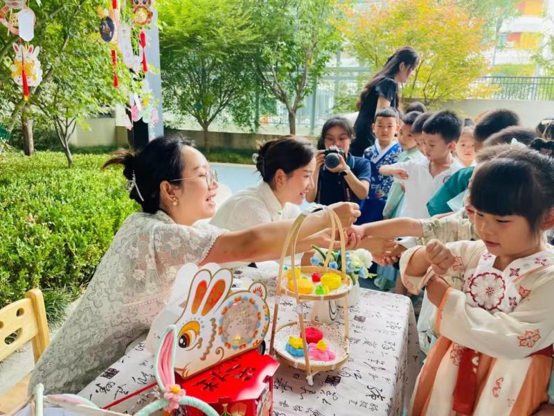 沣东第三幼儿园为了让孩子们了解中秋节的习俗,感受传统佳节的热闹气氛,开展了“月光集市 畅游中秋”中秋节主题活动,家长孩子们穿越古今,体验中华优秀传统文化的魅力。