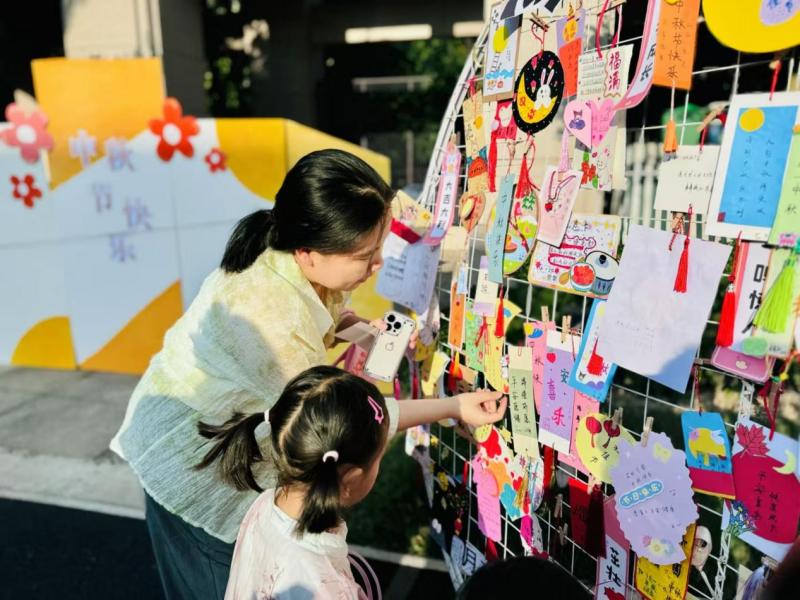 沣西同礼幼儿园宝贝们和家人一同挂起中秋祈愿签,为亲人送去最美好的祝福。