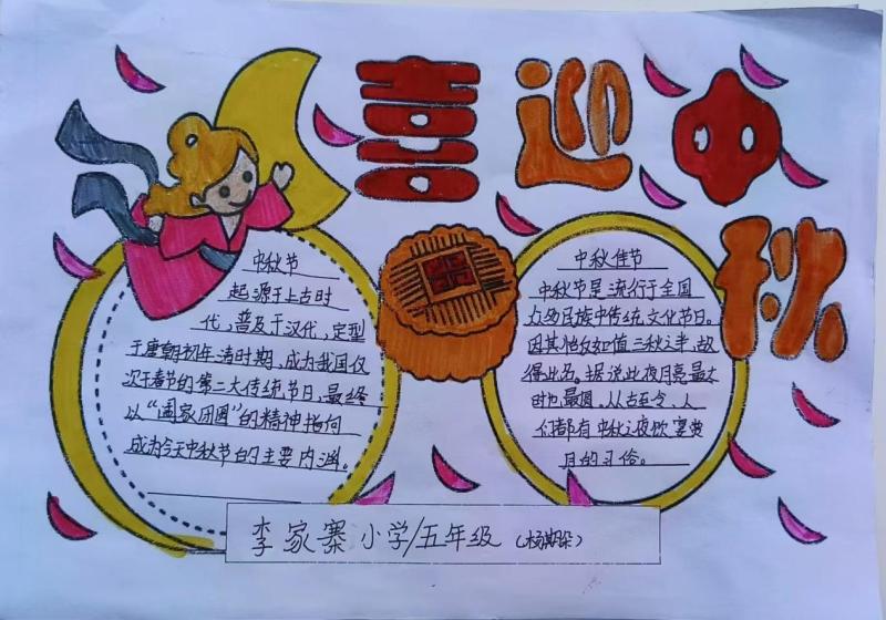 秦汉周陵李家寨小学精心策划了以“月满中秋,童梦同欢”为主题的手抄报活动。