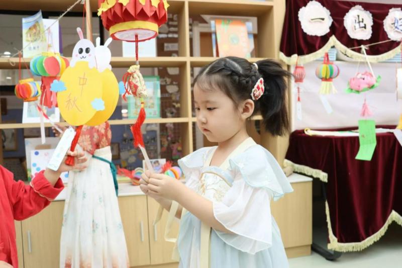 西咸新区金湾第一幼儿园的小朋友们沉浸在一场体验感满满的游戏活动中,感受汉服文化,制作祝福贺卡,提灯笼,猜灯谜,做月饼,玩游戏。小朋友们运用自己的方式,通过多角度的互动体验理解中华传统节日,收获快乐的同时懂得了分享与感恩。传统文化的种子在小朋友们心中生根发芽。