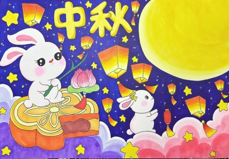 沣东阿房路学校同学们用绚丽的色彩和灵动的笔触,展现出了中秋佳节的独特魅力。一幅幅手抄报上,有圆圆的明月、可爱的玉兔、香甜的月饼,还有关于中秋的传说和诗词。