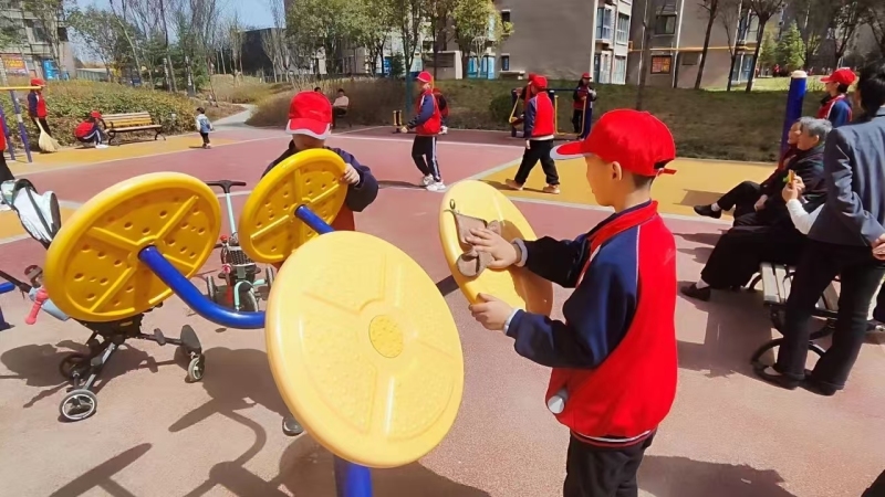 在课堂之外,各学校还注重实践活动对学生品德的塑造。定期组织学生参与志愿服务活动,让他们在帮助他人的过程中学会关爱与奉献。沣东第九小学开展思政大课堂 “三月春风暖人心,雷锋精神代代传” 活动,组织党员教师、团员教师、少先队员代表进行劳动志愿服务活动,在孩子们心中种下爱校园、爱劳动的种子。沣东车辆小学开展 “12.5 环保志愿服务” 活动,小青藤志愿服务队的师生走出校门,开展环保志愿服务活动。志愿者们擦拭垃圾桶、路牌等,捡起绿化带中的垃圾,宣传危险玩具知识,并归整和擦拭路边共享单车。沣东阿房路一校空港花园小学开展 “小手拉大手” 垃圾分类宣传活动。在教师志愿者带领下,小志愿者们向居民宣传垃圾分类知识,倡导保护环境。秦汉小学的党员教师带领少先队员们走出校门,来到秦宫地铁站进行义务劳动。同学们主动协助带孩子的乘客、年长的乘客、外地旅游的乘客们买票。公共区域的礼貌问好和感动道谢的声音让冬日的地铁站暖意融融。他们还随身带着抹布,清扫公共区域卫生,发挥自己的一份光和热。一个个秦汉小学的小水滴们,用他们忙碌的身影,微笑的面容,爽朗的笑声,让这个时代的雷锋精神散发出耀眼的光芒。空港实验学校开展 “学雷锋,敬老行” 志愿活动,将学雷锋系列教育活动延伸到校外,形成学校、家庭、社会三位一体教育体系。一位家长感慨地说:“自从孩子参加了学校的志愿服务活动后,变得更加懂事了,也知道关心他人了,这样的活动对孩子的成长太有意义了。”