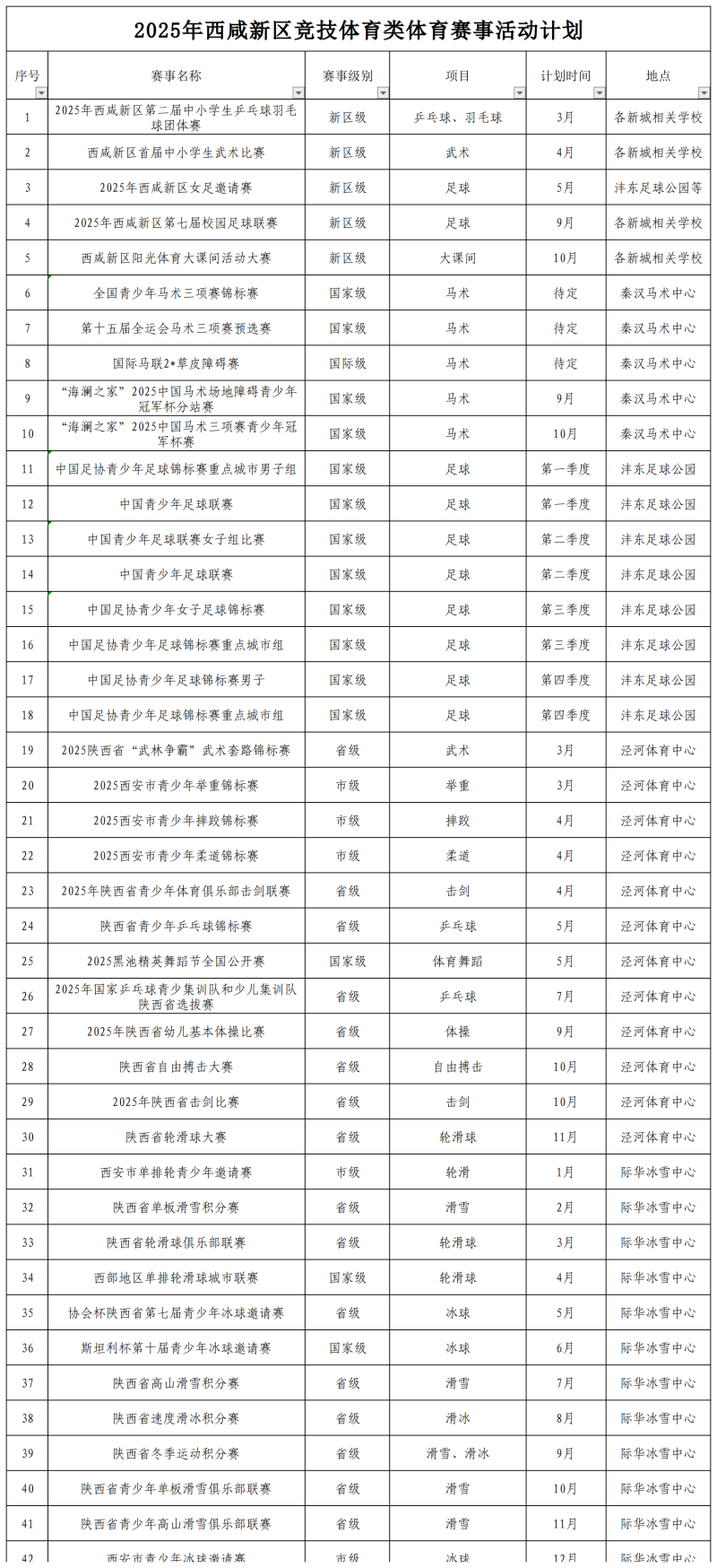 2025年西咸新体育赛事活动计划如下: